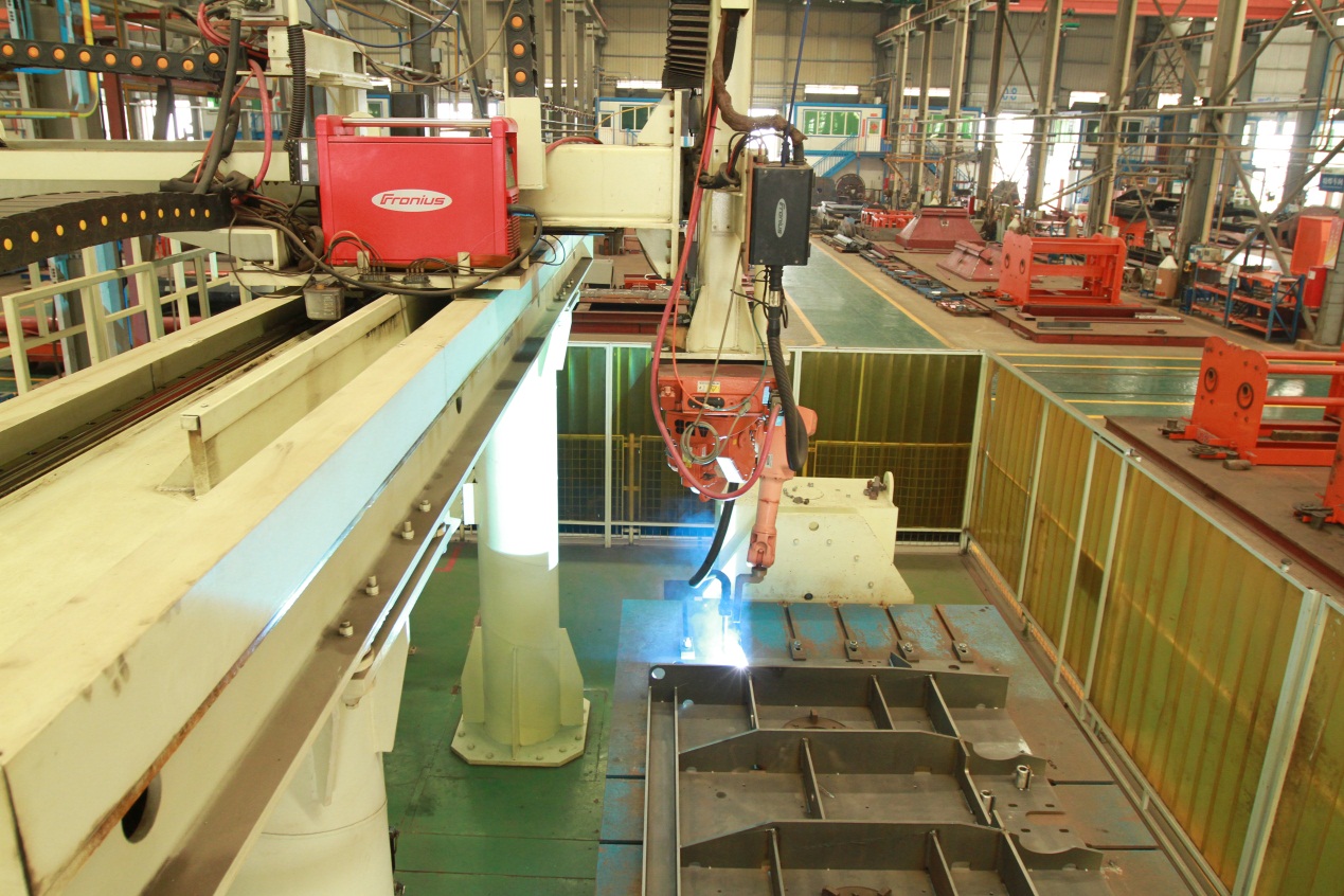 焊接,是大型机械设备生产制造中关键的工艺技术,焊接质量直接影响到产品性能和使用寿命。由进口焊接机器人、焊机等国际尖端设备组成的南方路机焊接自动化生产线,可执行24小时无人值守作业,极大提升了设备焊接质量和效率。搅拌主机桶体已实现100%机器焊接,与传统焊接工艺相比,搅拌桶体焊接后的对角线误差从5毫米减少到1毫米以内,达到行业最高水平。