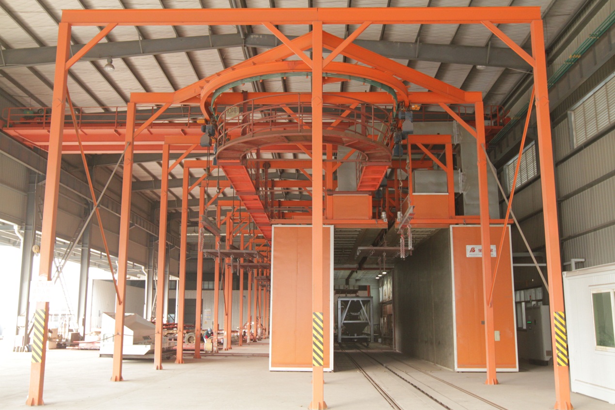涂装作业生产线,运用先进的水漩式自动化送料喷涂设备,以数控方式控制大型工件的自运化送料,降低人员劳动强度,提高生产效率,采用新型天然气加热的烘干房,烘干不受天气影响,保证喷涂质量,废气排放用天然气烧化,减少对大气污染,同时,水漩式漆雾处理系统的使用,极大改善工人的作业环境。