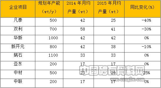 表1 长江流域部分调研企业骨料月均产量及同比变化