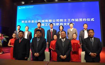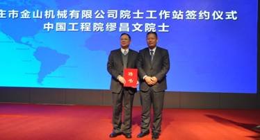 11月7日,枣庄金山机械有限公司院士工作站签约仪式举行,中国工程院院士缪昌文先生、北京建筑大学宋少民教授、金山机械董事长孙中岩先生和百旺科技总经理杨晓东先生共同签署了金山机械院士工作站《合作协议》。同时举行了枣庄市金山机械向中国工程院院士缪昌文院士颁发聘书仪式、金山机械院士工作站揭牌仪式、中国砂石协会“高品质砂石骨料研究中心”授牌仪式。至此,枣庄市金山机械有限公司院士工作站正式成立。