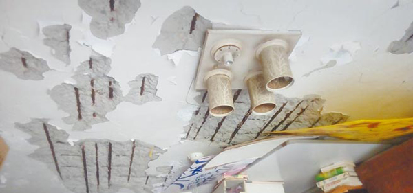 台北市国宅海砂屋问题严重,新隆国宅外墙与室内多处发生剥落情况,令居民忧心