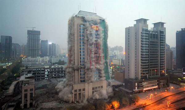 15日上午7时,随着“嘭”的第一声爆破声,陕西省西安市高新区高新二路一座高118米的高楼成功被爆破拆除。这是目前国内城市爆破拆除中最高的楼房,整个爆破作业前后仅用时15秒,成为“全国第一爆”。