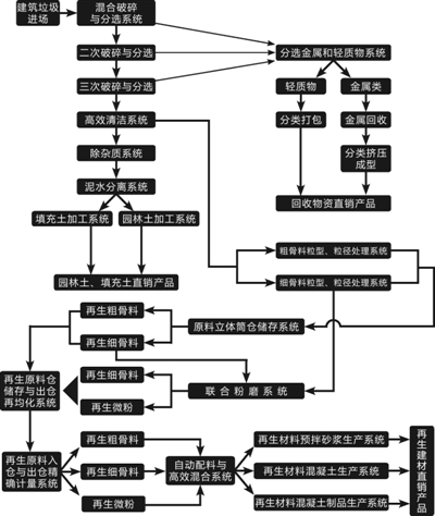北京元泰达建筑垃圾资源处置与利用一体化工厂建筑垃圾处置流程示意图