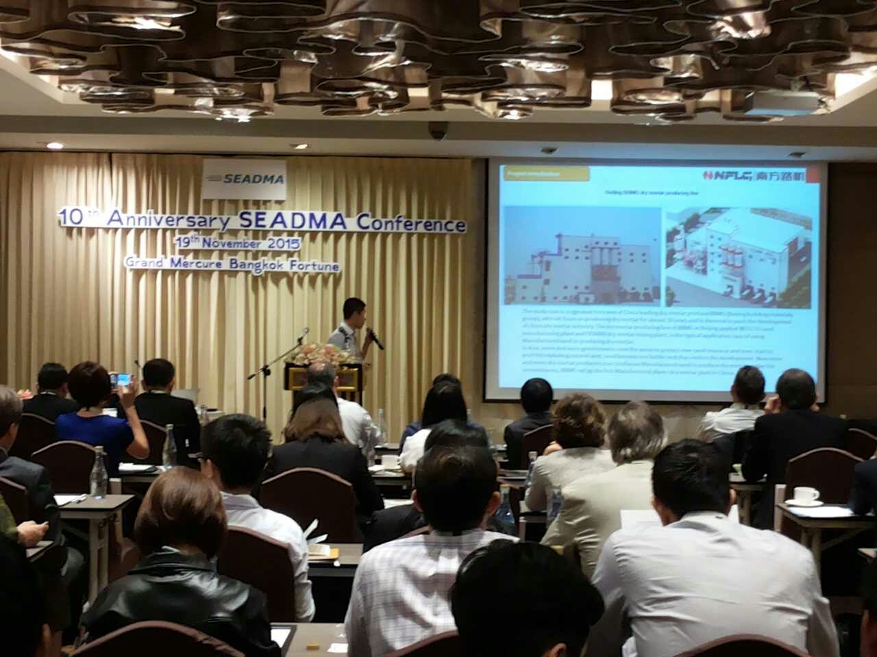 由国际知名干混砂浆网drymix.info主办,东南亚干混砂浆协会SEADMA承办的第十届东南亚干混砂浆年会于2015年11月19号在泰国曼谷举行。世界顶尖的化工原料企业,设备制造商和来自东南亚各国的干混砂浆用户汇集于此,南方路机作为亚洲地区唯一一家干混砂浆搅拌设备制造商应邀参加此次会议,并派海外事业部代表做了题为《与干混砂浆生产线配合的制砂系统》的技术报告,将南方路机最新的制砂+干混整体方案成套设备的应用案例分享给与会者。