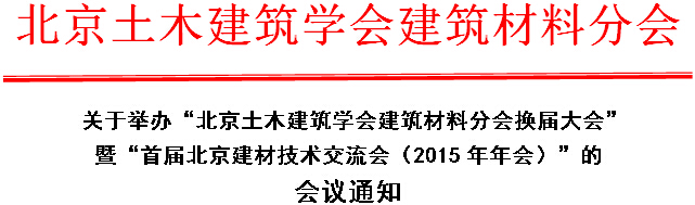 为充分发挥北京地区土木建筑领域的科技人员的作用,促进北京地区土木建筑和建材技术进步,北京土木建筑学会建筑材料分会定于2015年12月11日在北京举办“北京土木建筑学会建筑材料分会换届大会”暨“首届北京建材技术交流会(2015年年会)”。本委员会吸纳了行业内各高校、科研院所、企业等单位具有较高知名度和影响力的专家学者,涵盖建工、水工、冶金、铁路、市政、交通等多个行业,包括混凝土、防水、砂浆、制品、外加剂、墙体材料、涂料、检测和新型建材等与土木建筑相关的主要方向。会议将邀请行业内知名专家做相关精彩的技术报告,欢迎我市从事土木建筑及建筑材料的研究开发、生产、施工、监督、质检和管理的专家、学者、技术人员及相关人员参会。