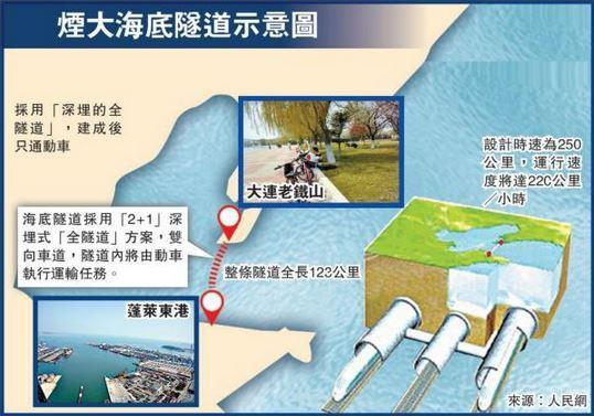 据辽宁省大连电视台《大连经济报道》11月27日报道,国务院正式审议2016年重点工程,其中渤海海峡跨海通道(即烟大海底隧道)施工方案已于日前正式出炉。