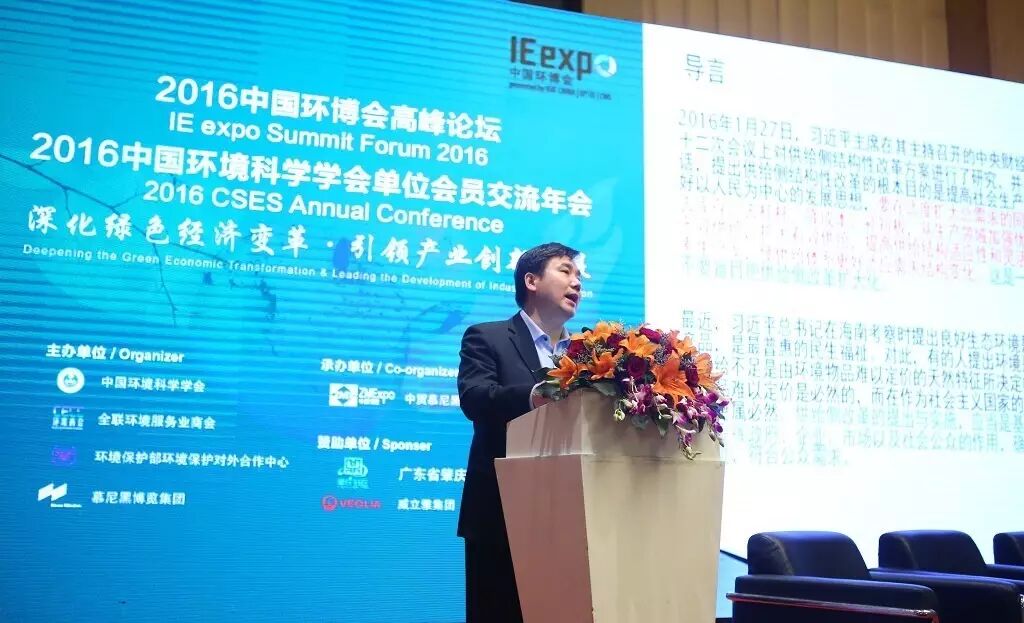 环保部科技司巡视员兼副司长刘志全在大会上代为宣读了环保部黄润秋副部长的致辞。致辞强调环保产业肩负着为改善环境质量服务,拉动经济增长,促进结构转型的重大使命。