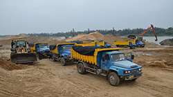 摘要:11月12日,平头村数位村民在潮白河河堤左堤路旁发现正在挖砂的铲车,将其围堵。这辆铲车的所有人正是平头村村民王立忠,现任村支书王响忠的弟弟。