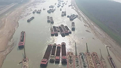 湘江湘阴段水位跌至历史新低 千吨砂石船需减载通航